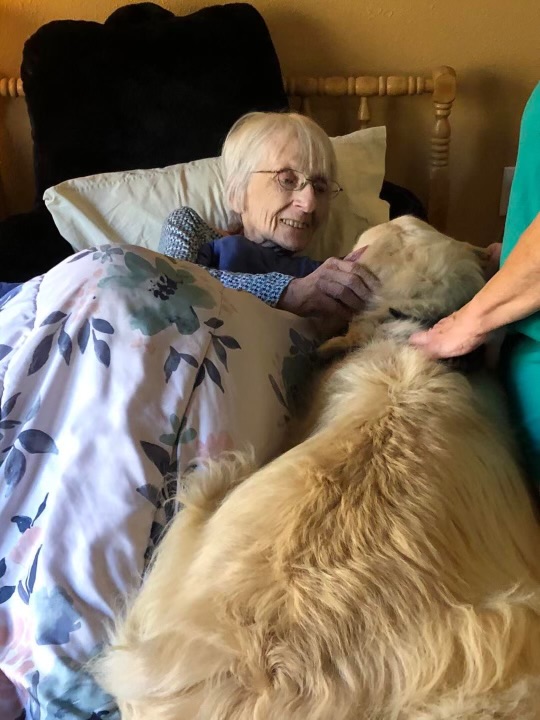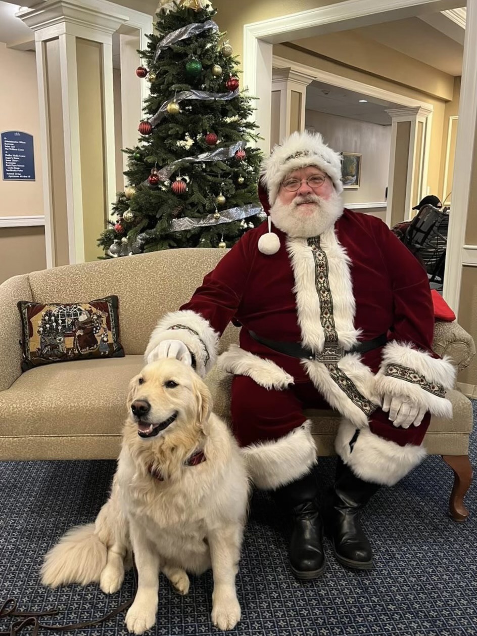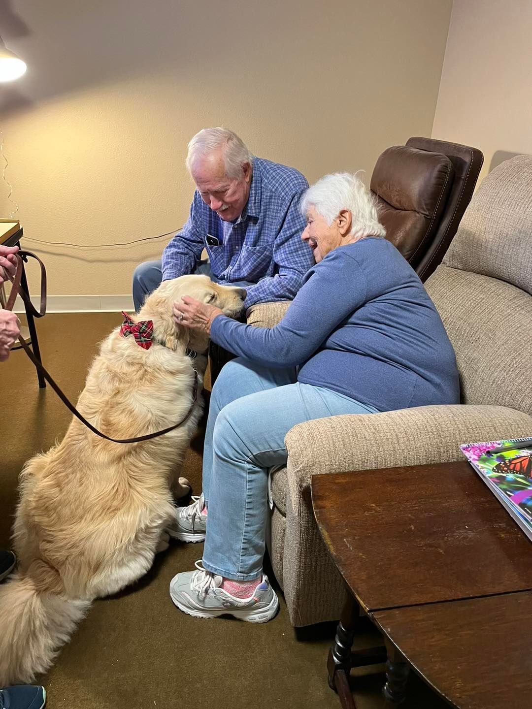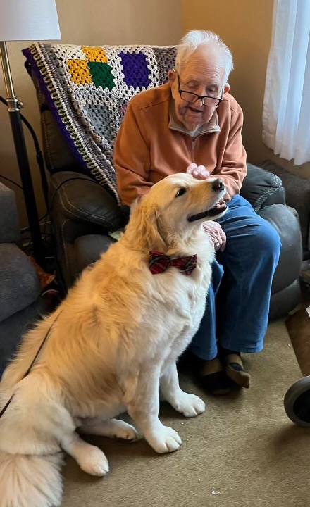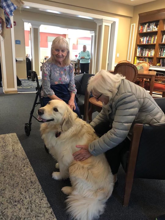 Jack and I have been going to All American Assisted Living for a little over a year. They love Jack’s visits! All American has Jack visit at the same time as there are music entertainment events. Jack and I visit with some of the people who don’t attend the musical events. The activities director and I go from room to room, checking to make sure they want a visit with Jack. Some then go to the music activity as well! One woman insists Jack climb on her bed! The bed is a single bed but Jack and her fit without room to spare!