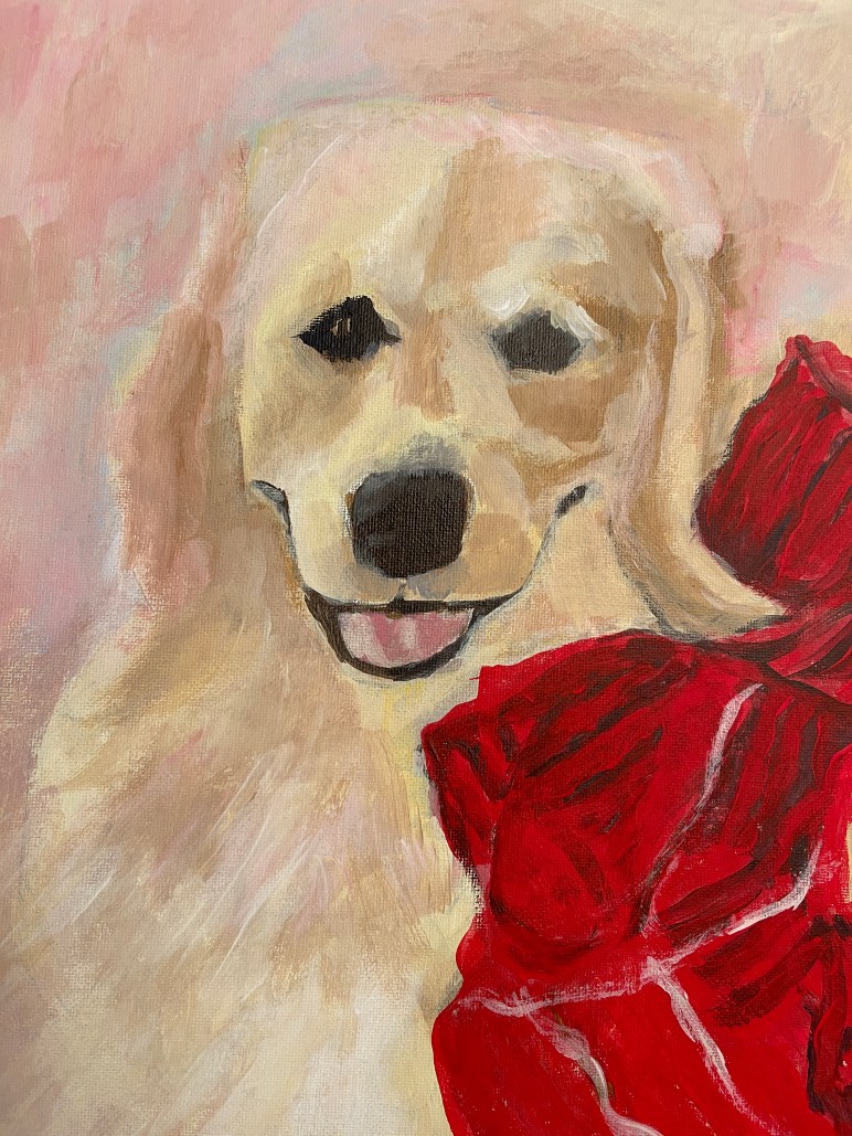Visitation Story: Jack and I have visited 6 times to Rockingham County Rehabilitation and Nursing Center (RCRNC). Jack visits with many residents who now know him by name. On a previous visit a resident asked for pictures of Jack. She paints pictures. Jack and I were presented the picture this week.