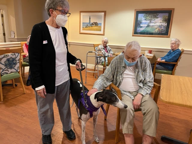 First official visit …Havenwood nursing home. Concord, NH. Activities director took us around. We visited three floors. Using the elevator with ease. Residents are used to seeing other dogs, but never a Greyhound. We think we are a unique team. Anna was eager to see people, not shying away. She is too big to be … Continue reading Congratulations to our New Partners!